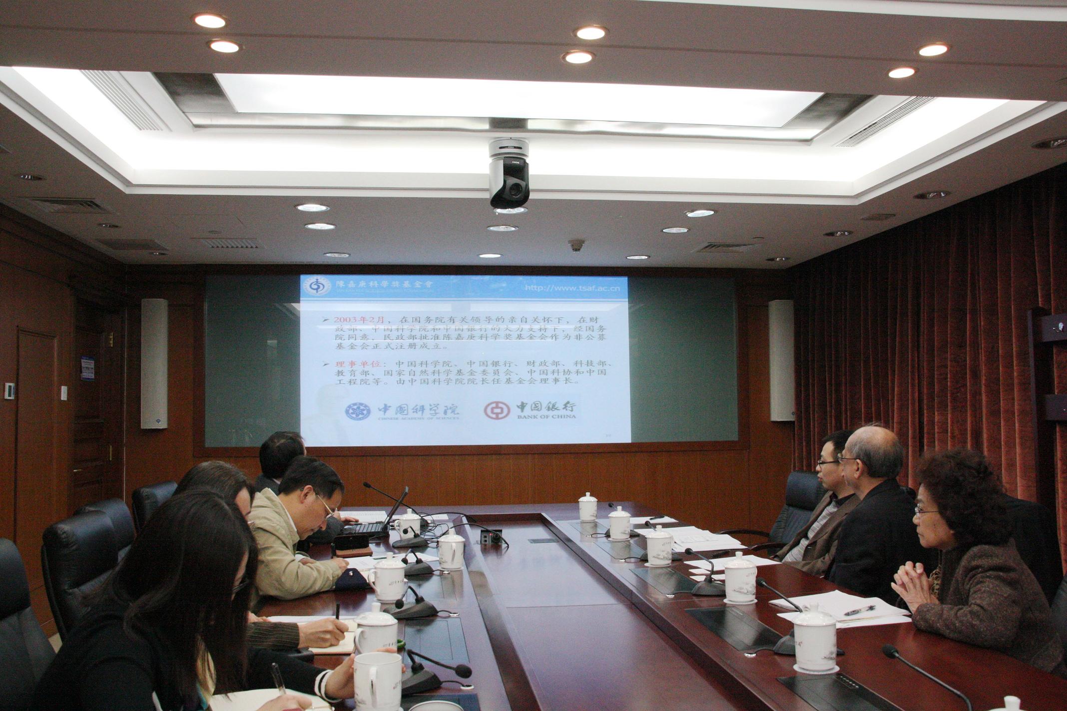 周德進秘書長代表白春禮理事長和李靜海副理事長對潘國駒教授一行的到來表示熱烈歡迎。基金會辦公室介紹了基金會的歷史沿革及目前開展的主要工作,并特別感謝陳共存先生和潘國駒教授為陳嘉庚科學獎的前身-陳嘉庚獎的設立與運作做出的重要貢獻。會談中,潘國駒教授高度贊揚基金會目前開展的各項卓有成效的工作,以及在弘揚嘉庚精神方面所做的努力,并提出與基金會進一步加強交流與合作的愿望。周德進秘書長表示,陳嘉庚先生是一位時代偉人,弘揚嘉庚精神是我們的共同愿望,贊成與新加坡陳嘉庚基金合作舉辦高層次的學術活動,增進兩國科技界的交流與合作。